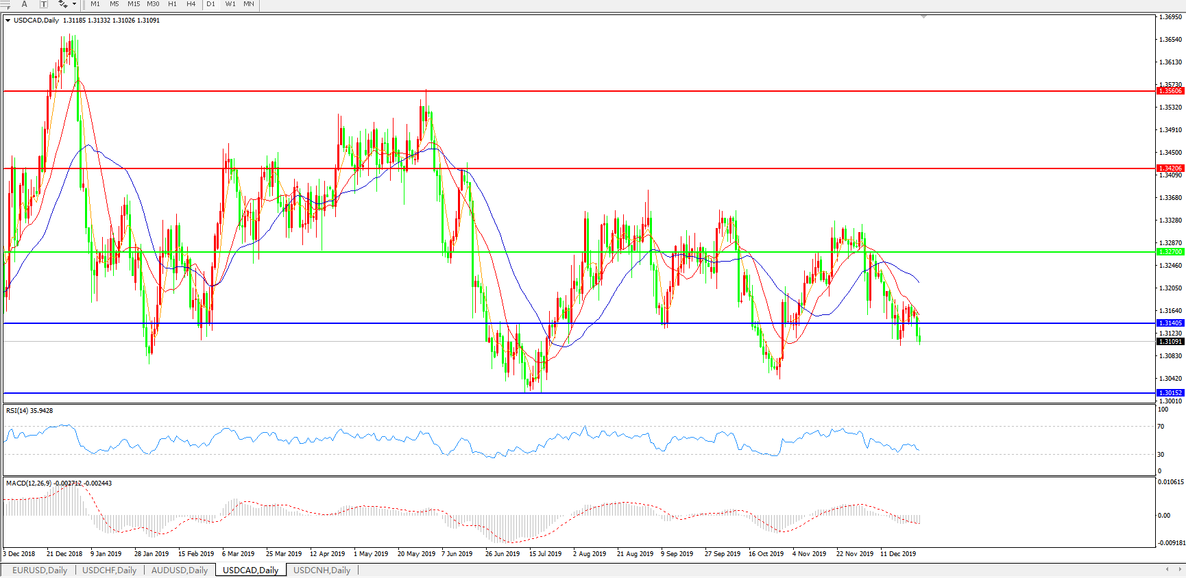 美元兑加元USDCAD    日线图: