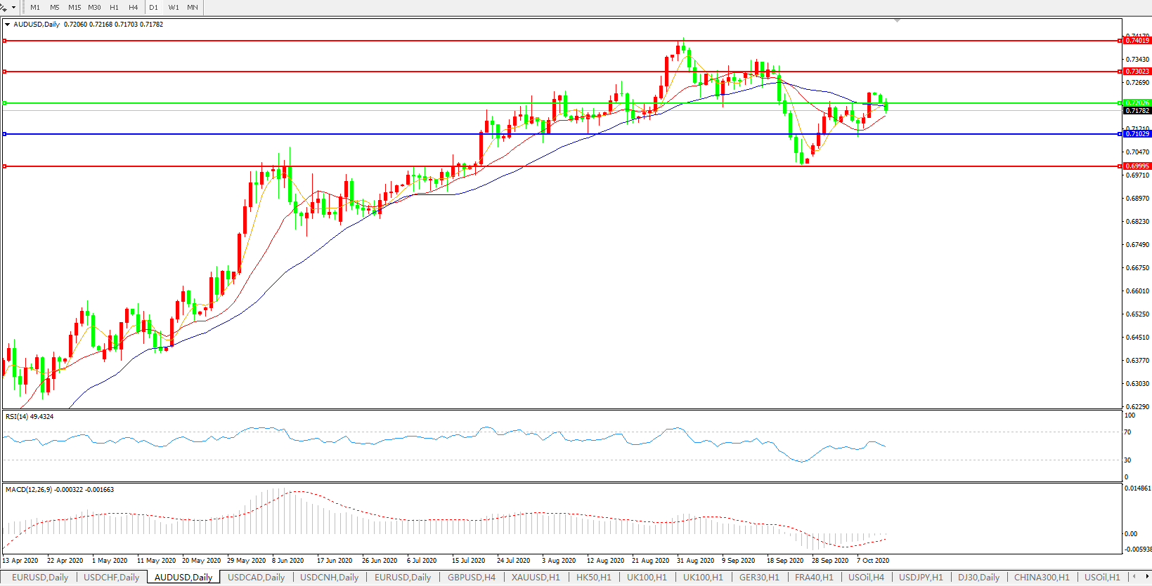 备选策略:0.7200上方看涨,目标0.7300、0.7400