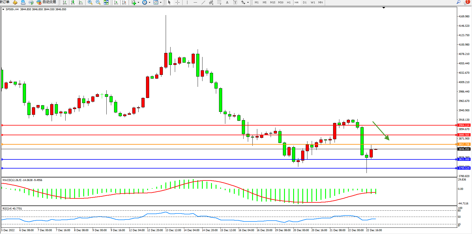 标普500指数12月22日(周四)收盘下跌54.44点,跌幅1.40%,报3824.00点;美国初请失业金人数变化不大,仍接近历史低位,突显出在供应受限的劳动力市场,企业不愿裁员。续请失业金人数小幅下降至约167万人,该数据一直在缓慢攀升,这可能表明失业人士更难找到新工作。